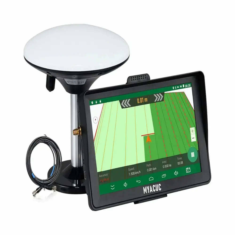 Γιατί να επιλέξετε το Σύστημα Πλοήγησης της Movil; Το σύστημα διαθέτει μια εντυπωσιακή οθόνη (επιλογή ανάμεσα σε 7 ή 9 ίντσες) με τεχνολογία High Brightness. Αυτό διασφαλίζει ότι η οθόνη παραμένει απόλυτα ευανάγνωστη ακόμη και κάτω από το δυνατό ήλιο, χωρίς αντανακλάσεις. Η καρδιά του συστήματος είναι η εξωτερική κεραία υψηλής ακρίβειας (το “λευκό πιάτο” GNSS). Η κεραία αυτή είναι ειδικά κατασκευασμένη από ανθεκτικά υλικά υψηλής αντοχής για να αντέχει στις σκληρές συνθήκες του χωραφιού, όπως η έντονη σκόνη, η υγρασία και οι συνεχείς κραδασμοί του κινητήρα.